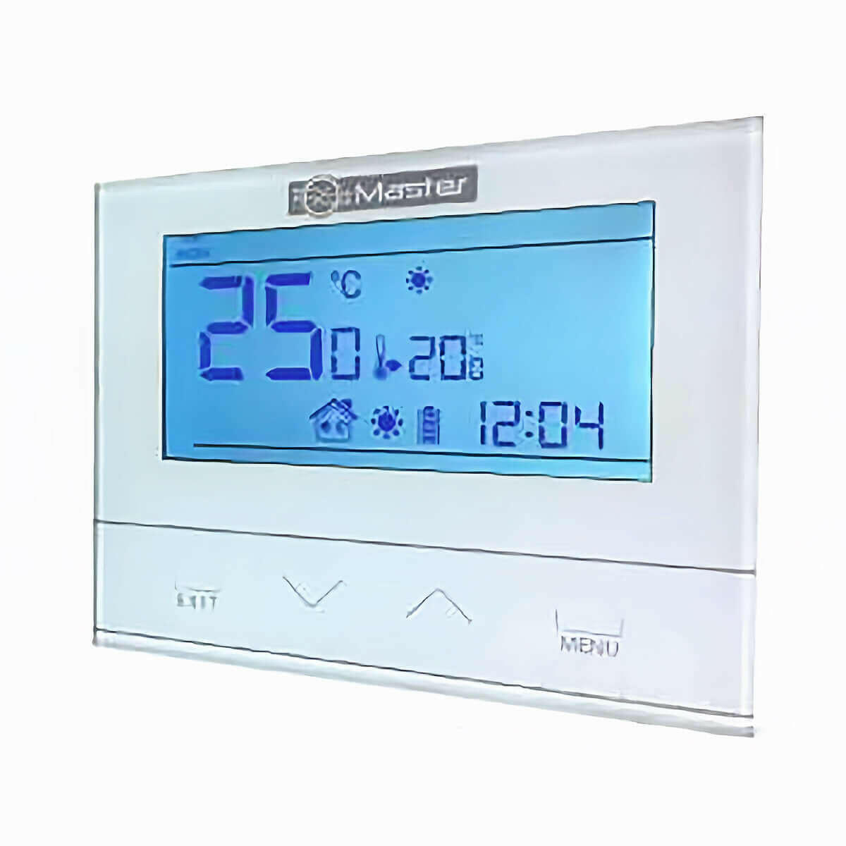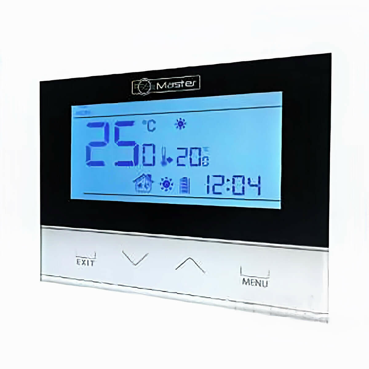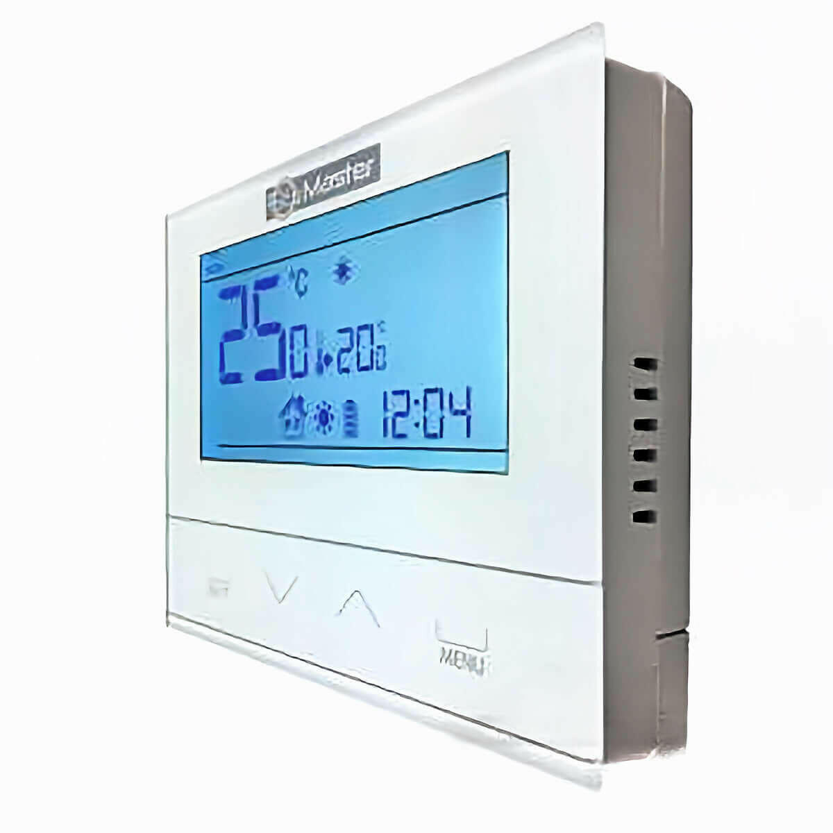 Master R.23 ruumikontroller pakub teile mugavat ja tõhusat lahendust kütteseadmete juhtimiseks. Tänu integreeritud nädalasele juhtimisele, stiilsele disainile ja kasutajasõbralikule kasutamisele sobib see termostaat ideaalselt kasutamiseks nii elamutes kui ka äripindades. Seinale paigaldamine on kiire ja lihtne tänu pinnapealsele disainile.