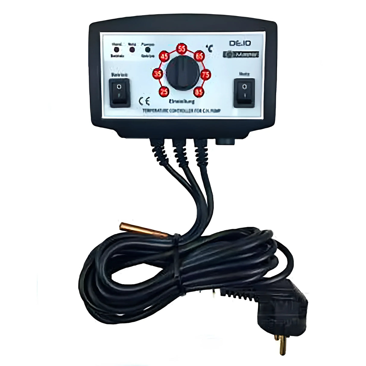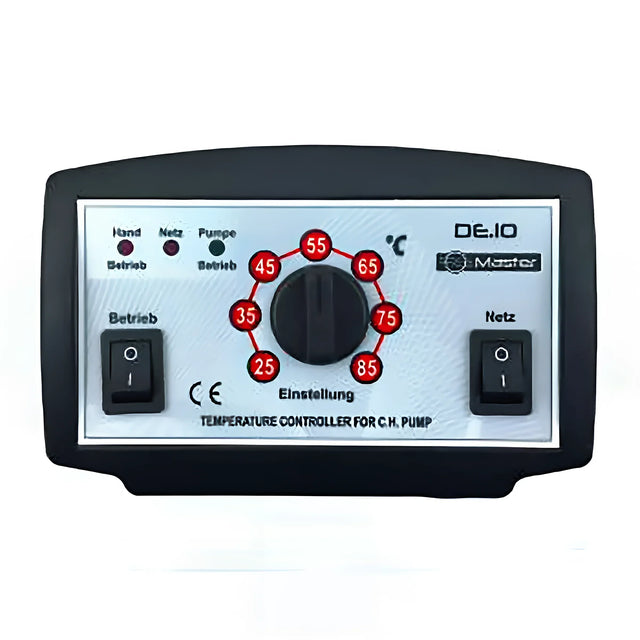 Master DE.10 pumbakontroller võimaldab teie tsirkulatsioonipumba või katla tagasivooluvõimendi täpset juhtimist. Temperatuuri saab hõlpsalt reguleerida mugava pöördnupu abil. Kontroller lülitab pumba sisse niipea, kui seatud temperatuur on saavutatud, ja deaktiveerib selle automaatselt, kui katla temperatuur langeb sihtväärtusest rohkem kui 2 °C allapoole. See täpne funktsionaalsus tagab, et pump töötab ainult siis, kui seda tegelikult vaja on. See tagab energiasäästliku töö ja pikendab pumba kasutusiga.