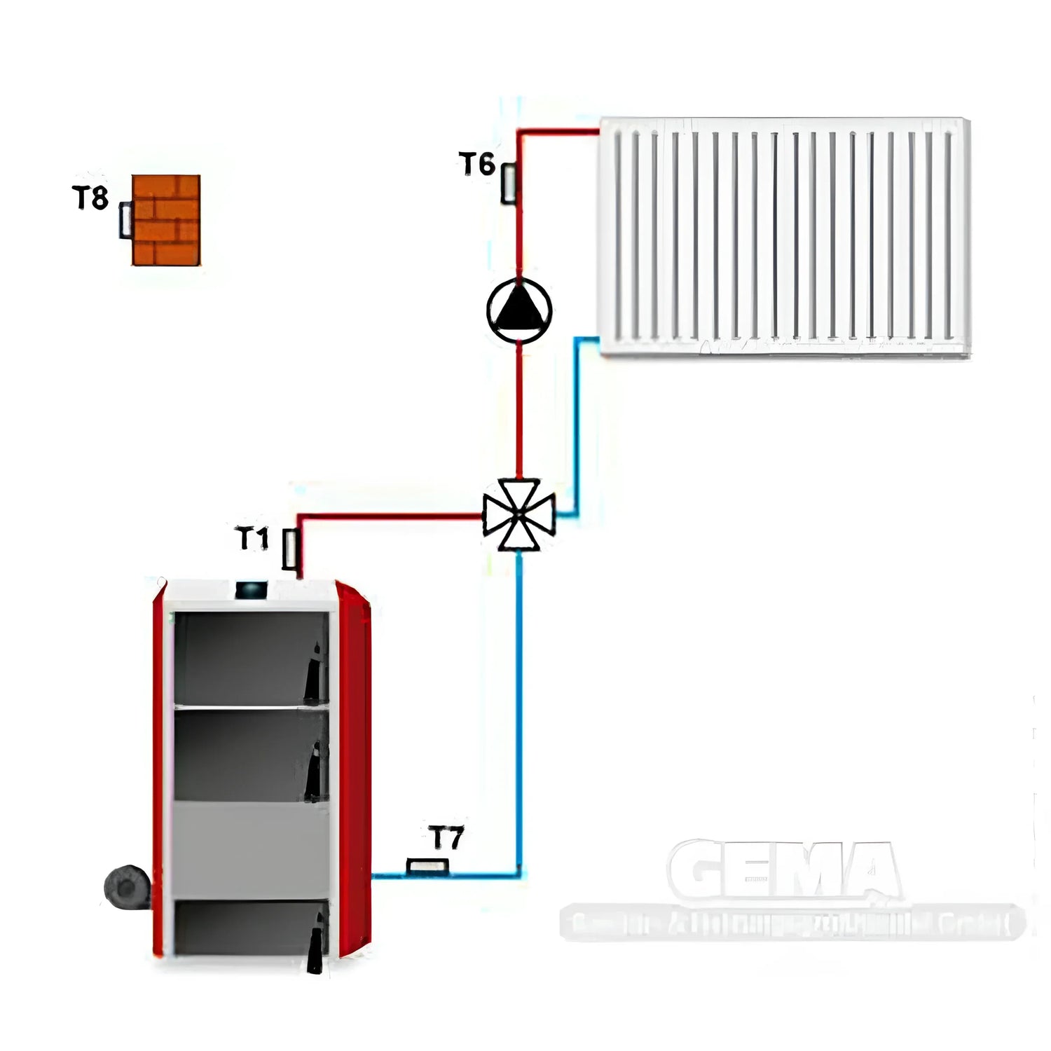 Küttesüsteemi juhtimissüsteemi teine ​​funktsioon on ilmastikutingimustest sõltuv, ruumitermostaadi või fikseeritud väärtusega küttekontuuri segisti juhtimine. Loomulikult juhib regulaator ka tsirkulatsioonipumpa ja kalibreerib end vastava ajamiga.