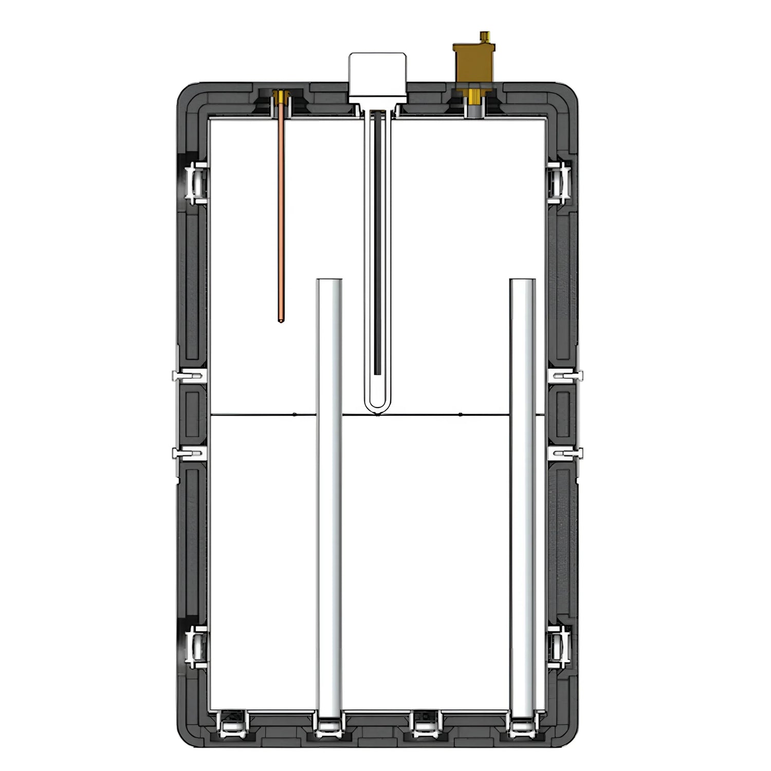 The Bomber 50 C's housing is made of corrosion-resistant treated steel with a cataphoresis coating and is insulated all around with 40 mm thick EPP foam (λ 0.034 W/mK). This minimizes heat loss and makes it suitable for both hot and cold applications.