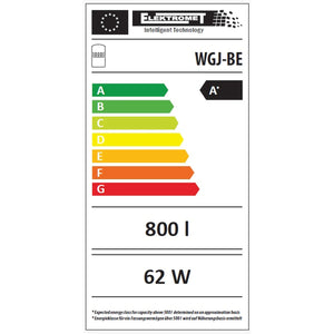 WGJ-BE 800: Storage volume approx. 710 l, standstill losses approx. 62 W, ​​weight ~143 kg. WGJ-BE 1000: Storage volume approx. 830 l, standstill losses approx. 71 W, weight ~160 kg. Maximum operating pressure: 0.3 MPa; Maximum operating temperature: 80 °C.