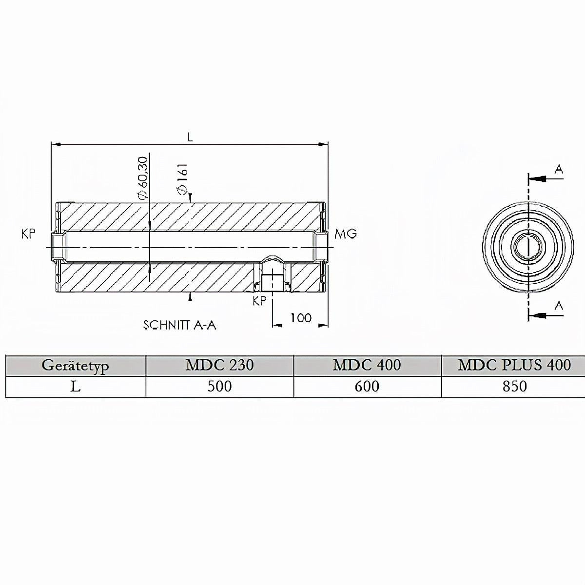 • Dimensions MDC400 (diamètre x longueur) : 161 mm x 600 mm