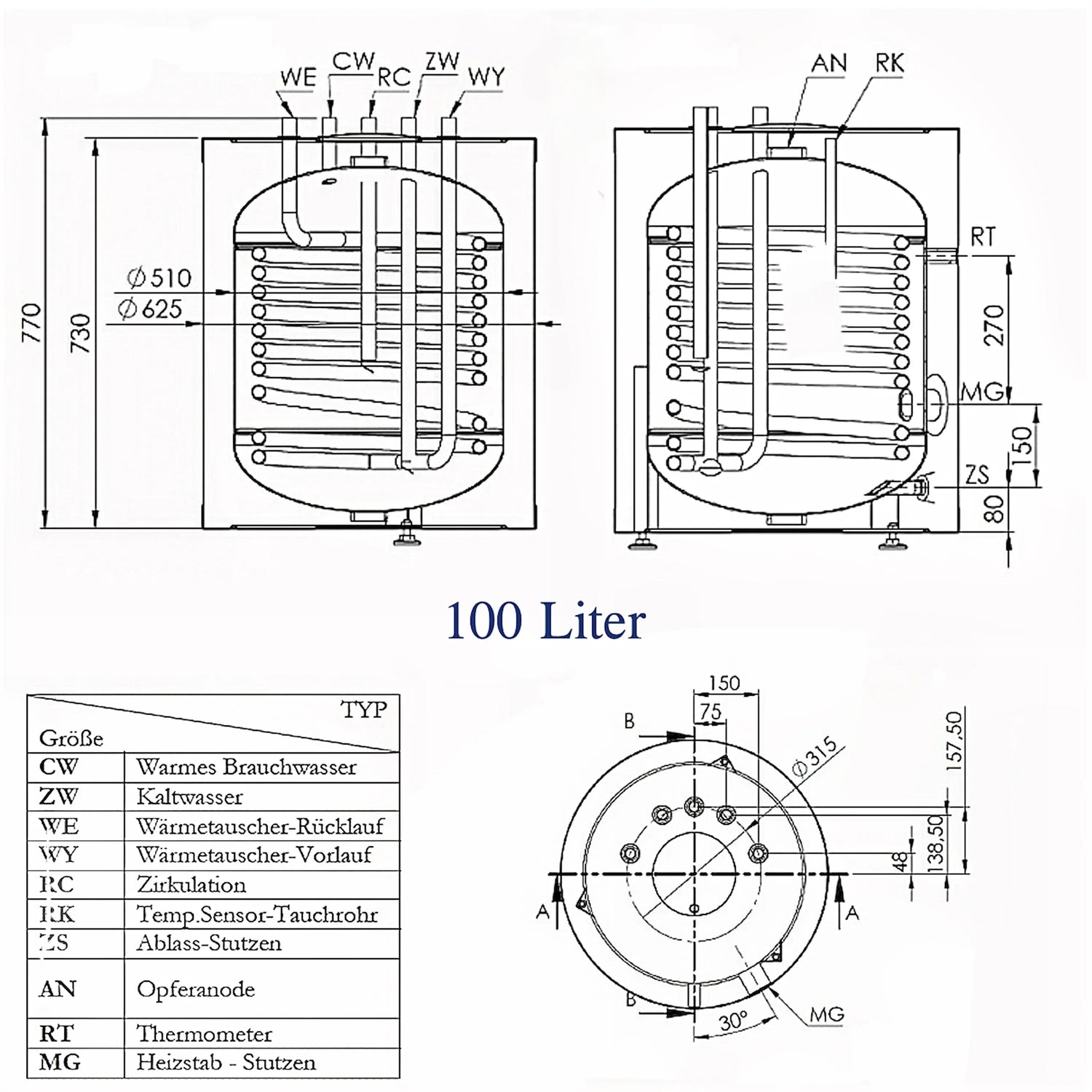 – Ballon d’eau chaude GEMA avec échangeur de chaleur et isolation
