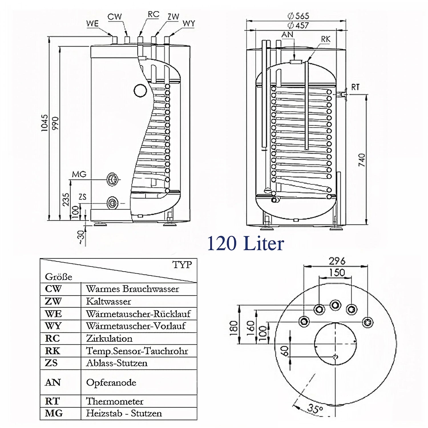 Les volumes des ballons de stockage varient de 100 à 180 litres et couvrent efficacement les besoins en eau chaude des ménages de petite et moyenne taille. Selon le modèle, la surface de l'échangeur thermique varie de 1,2 à 1,67 m², et sa capacité de 5,3 à 7,8 litres.