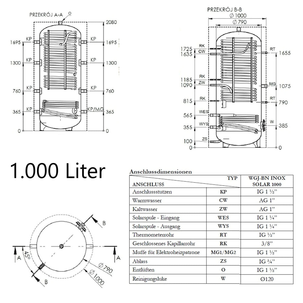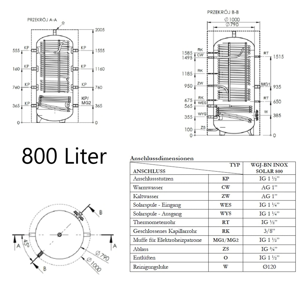 Is umar stórála maolánach comhcheangailte é an WGJ-BN INOX SOLAR le haghaidh uisce a théamh agus uisce te tí le corna téimh cruach dhosmálta comhtháite mar mhalartóir teasa. Dearadh é le haghaidh comhtháthú i gcórais téimh lárnaigh le coirí, caidéil teasa, nó le haghaidh úsáid teasa gréine, agus cuireann sé ar chumas stóráil fuinnimh téimh agus téamh leanúnach uisce óil araon.