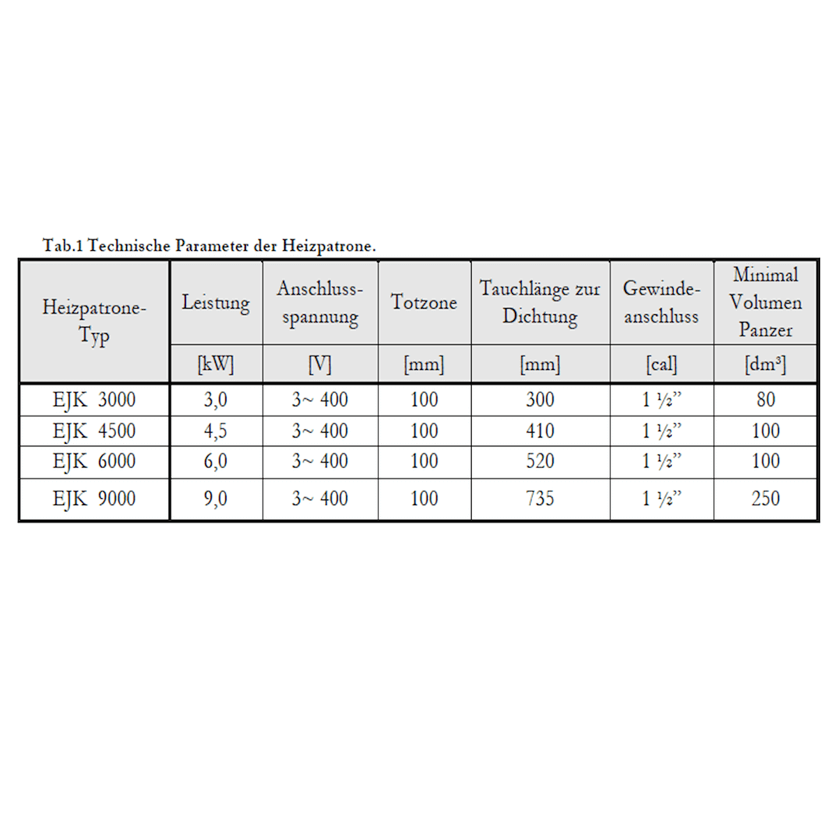 Grijaći element ima priključak s 1 1/2" Vanjski navoj (AG) i odgovara standardnim spremnicima tople vode i pitke vode. Zahvaljujući kompaktnoj duljini ugradnje od 520 mm i duljini bez grijanja od 100 mm, grijaći uložak može se brzo i jednostavno integrirati. Priloženi priključni kabel od 1,5 metara jamči jednostavno i izravno napajanje.