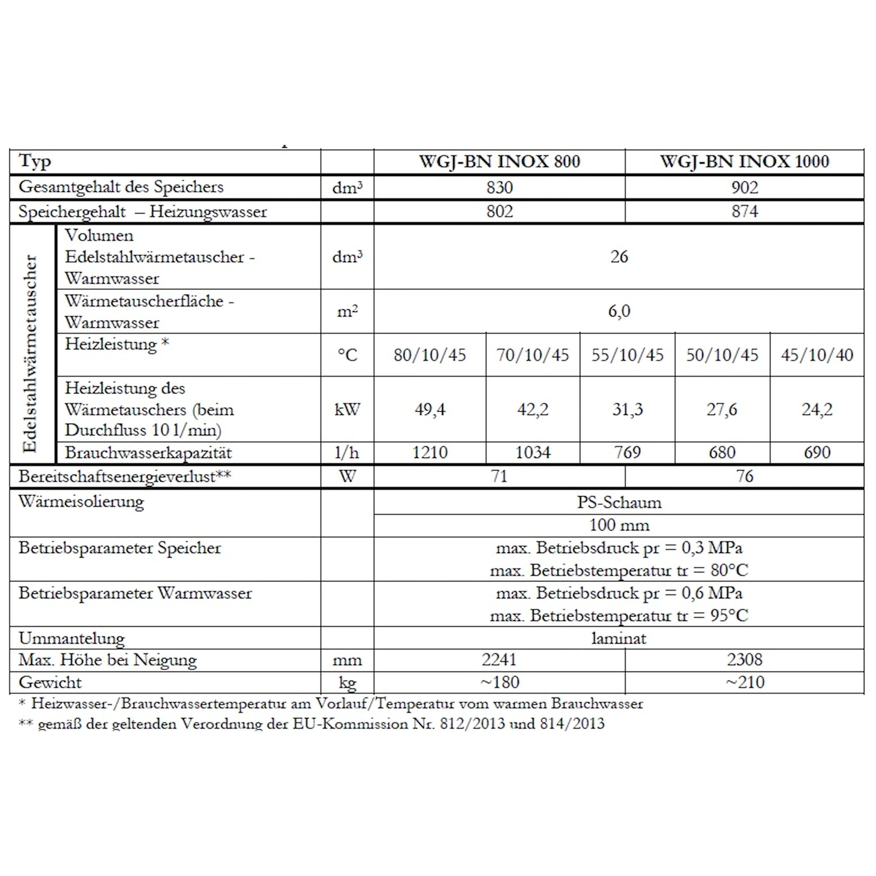 Il WGJ-BN INOX combina un serbatoio di accumulo per il riscaldamento dell'acqua con uno scaldabagno sanitario integrato. All'interno, un tubo corrugato in acciaio inossidabile funge da scambiatore di calore, offrendo un'ampia superficie di contatto per uno scambio termico rapido ed efficiente e consentendo il riscaldamento istantaneo dell'acqua. La pressione massima di esercizio del serbatoio è di 0,3 MPa.