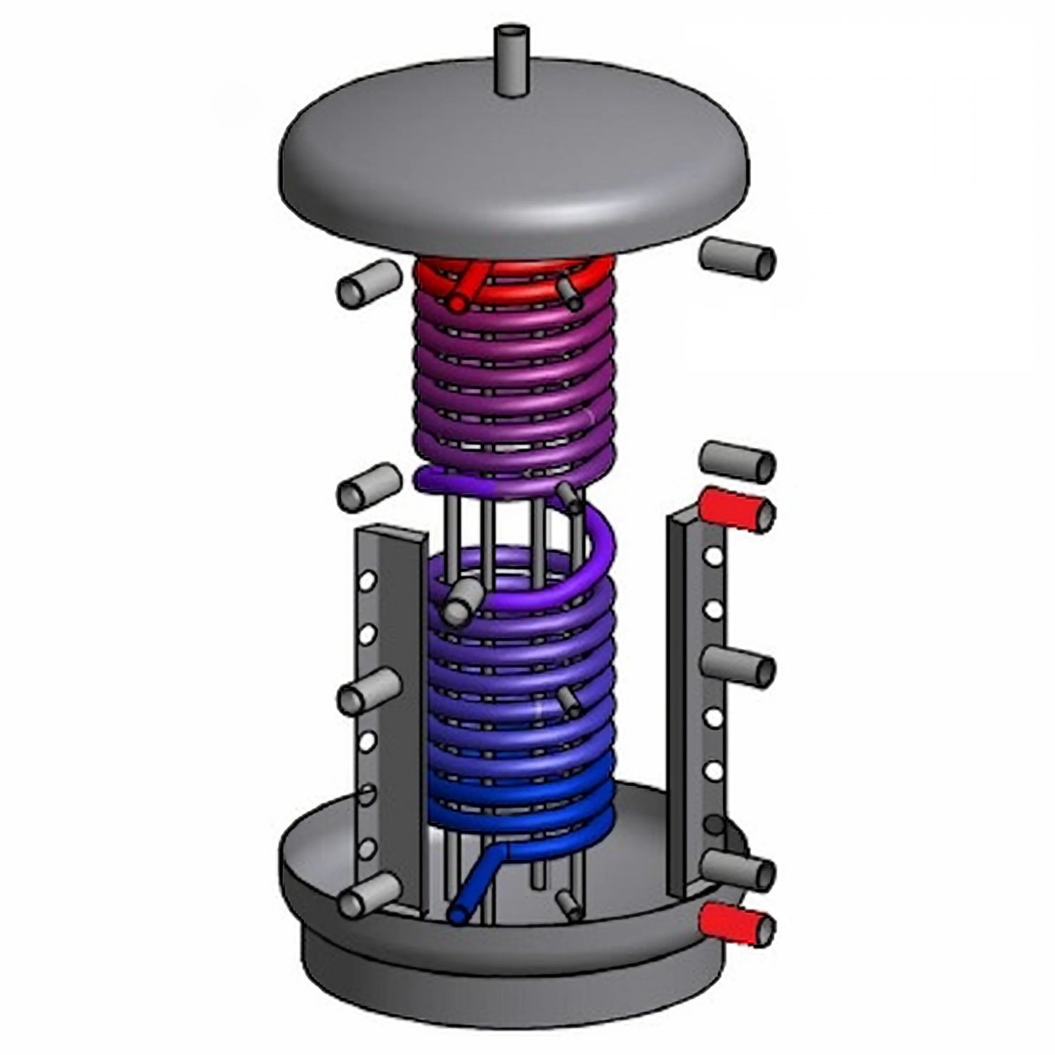Nerūsējošā tērauda gofrētā caurule nepārtraukti silda sadzīves ūdeni, nodrošinot, ka tiek uzkrāta tikai zema temperatūra. Šī konstrukcija novērš nepieciešamību pēc anoda, kā tas ir tradicionālajās dzeramā ūdens tvertnēs, un sistēmai nav nepieciešama apkope, vienlaikus nodrošinot augstu higiēnas līmeni.