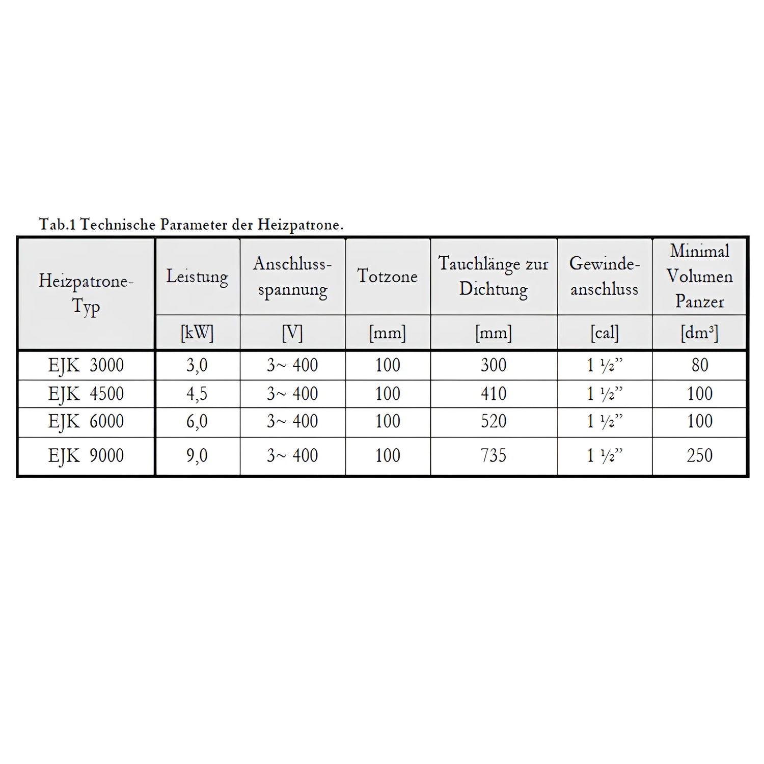 Pilnā komplekta sildīšanas kasetne ir pieejama dažādās jaudas klasēs, īpaši paredzēta 1,5 kW, 2,0 kW, 3,0 kW pie 230 V un 4,5 kW, 6,0 kW un 9,0 kW pie 400 V. Šīs variantes ļauj optimāli pielāgoties apkures sistēmas individuālajām enerģijas vajadzībām.
