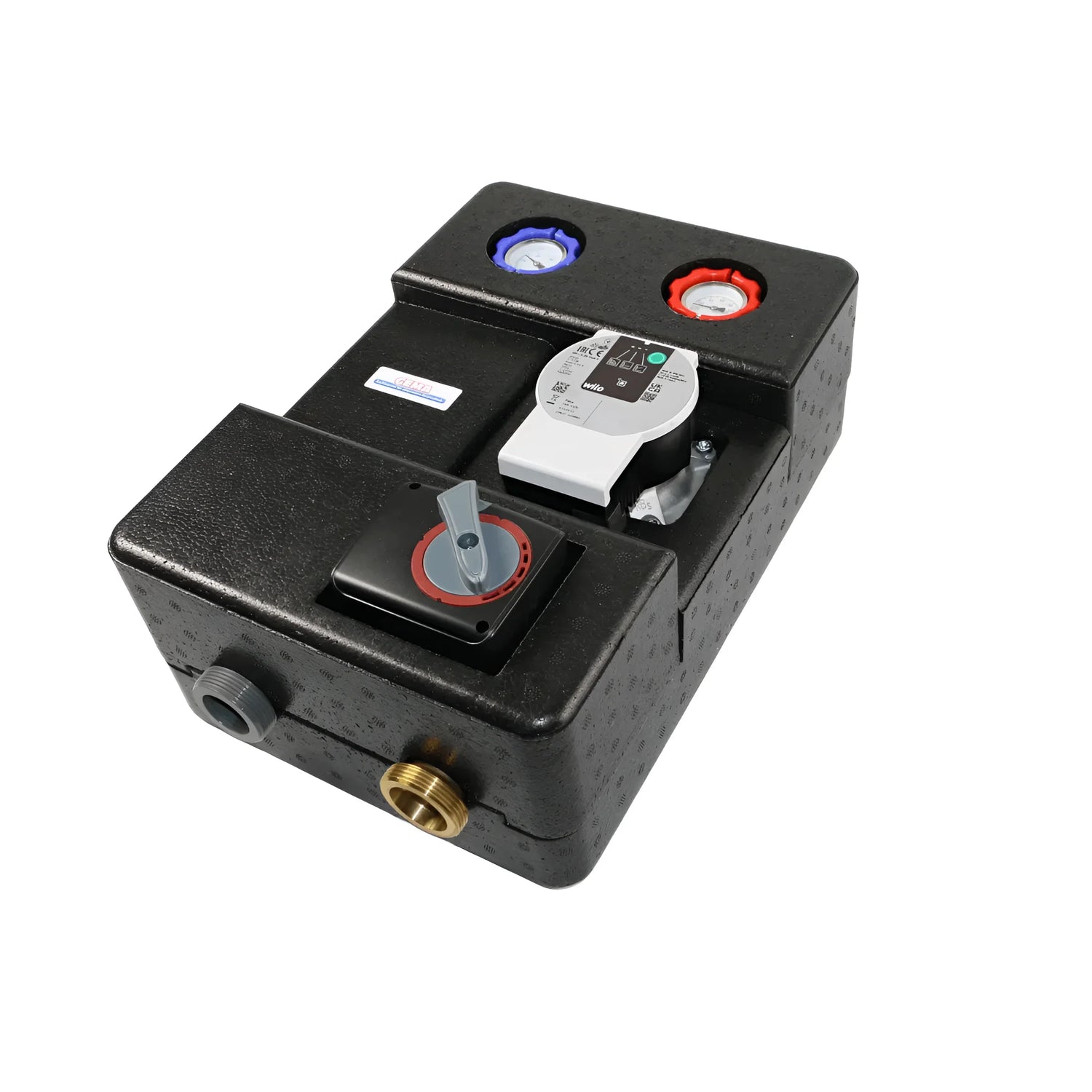 Die Pumpengruppe verfügt über ein innovatives Drei-Wege-Mischventil, das speziell für eine präzise Steuerung der Systemtemperatur entwickelt wurde. Der integrierte Mischermotor sorgt für eine exakte Steuerung der Heiz- oder Kühlströme, um eine gleichmäßige Temperaturverteilung zu gewährleisten. Ob es sich um die Regelung der Raumtemperatur in einem Gebäude oder um die Feinabstimmung eines Prozesswärmesystems handelt – diese Technik hilft dabei, die gewünschte Leistung und Effizienz zu erreichen.