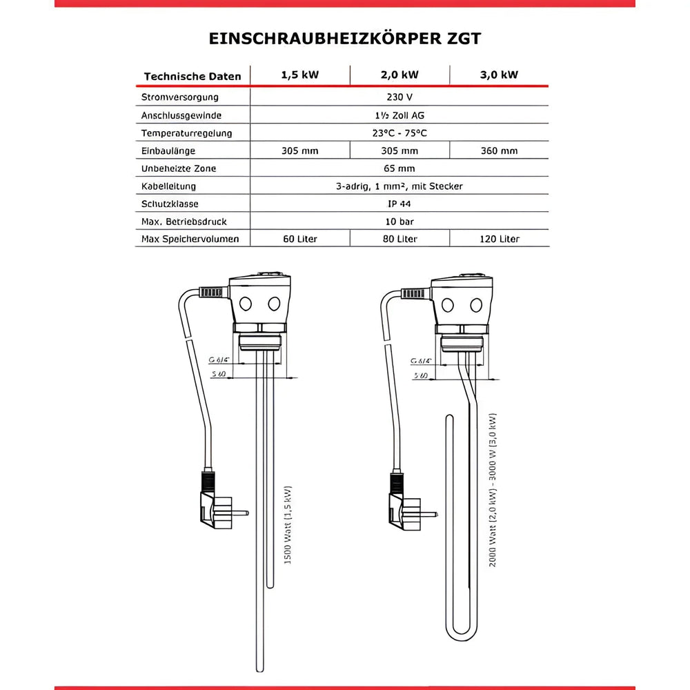 Mit einem einstellbaren Temperaturbereich von 30 °C bis 75 °C und einem integrierten Übertemperaturschalter, der bei 85 °C greift, gewährleistet der Heizstab einen sicheren Betrieb. Die steckerfertige Anwendung bei 230V ermöglicht einen einfachen und flexiblen Einbau, sodass moderne Sicherheitsstandards und Nutzerkomfort gleichermaßen berücksichtigt werden.