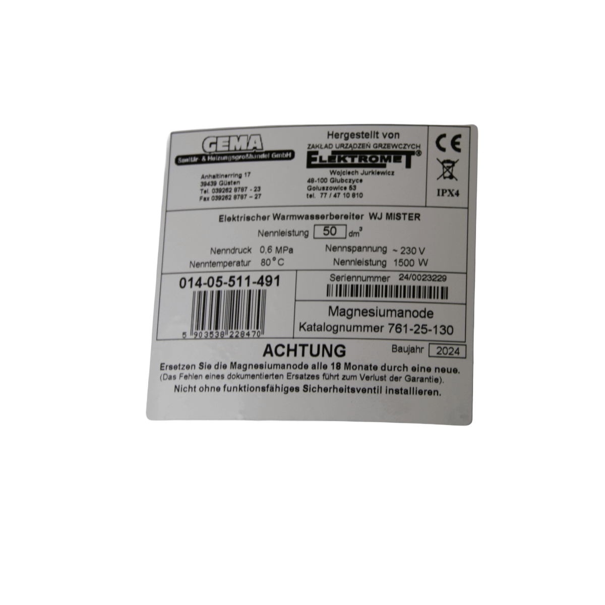 Dodatno zaščito električnega kotla pred korozijo zagotavlja magnezijeva anoda.